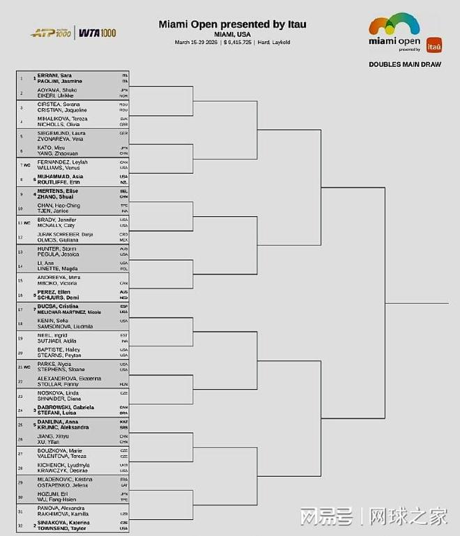 今天清晨,WTA1000迈阿密站的双打签表正式出炉。中国选手方面,共有五位女将组成四对组合参赛。首轮的对阵情况如下:张帅/梅尔滕斯对阵詹皓晴/曾丽美,蒋欣玗/徐一璠对阵达尼丽娜/克鲁尼奇,杨钊煊/加藤未唯对阵西格蒙德/兹沃娜列娃。