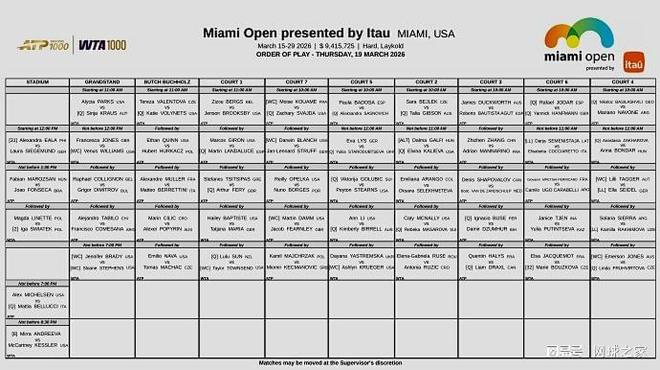 欢迎各位网球迷收听由《网球之家》提供的新闻午报,每天三分钟,让您了解最新的网球动态。今天是2026年3月19日,星期四。