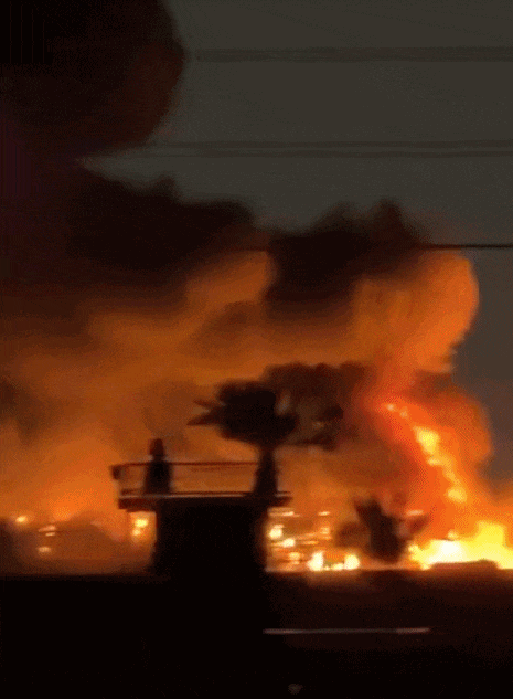 美国使馆后勤保障营地在袭击中燃起了大火。