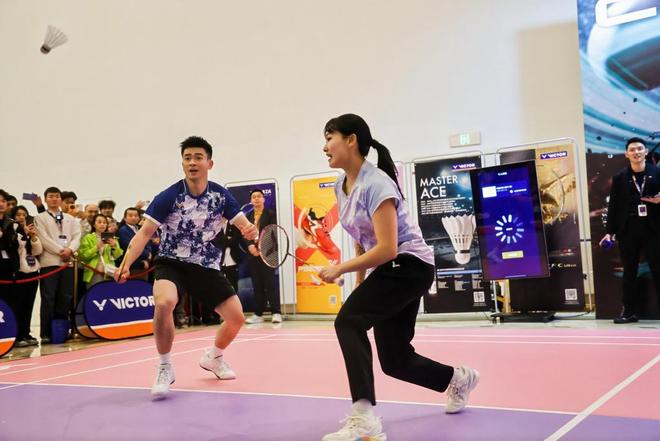 在VICTOR品牌大会期间,郑思维搭档蔡侑玎参加了一场比赛。