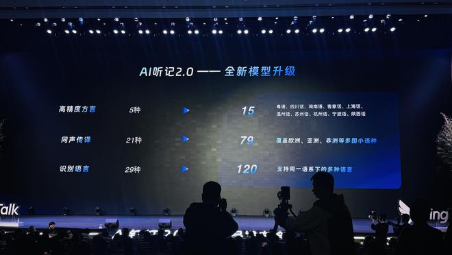 AI听记2.0全新升级。 高精度方言支持从5种提升到15种,同声传译从支持21种语言提升到79种,识别语言从29种提升至120种。这是一次对全球化场景的深度覆盖。