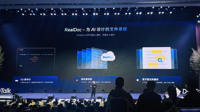 在文件系统方面,钉钉悟空推出了专为AI设计的文件系统RealDoc。AI会比人类更频繁地调用文件,而传统的文件系统是为人类设计的,AI需要的是过程导向的保存方式。