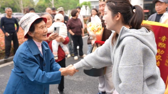 有人含泪道别,还有人紧紧握住她的手不愿松开。一位奶奶硬是要塞给她一筐自家攒的土鸡蛋:“路上吃点好的。”