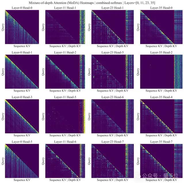 为了进一步提高效率和效果,团队还提出了一种新的混合深度注意力(MoDA)方案,该方案能够在序列维度和深度维度上同时聚合信息。