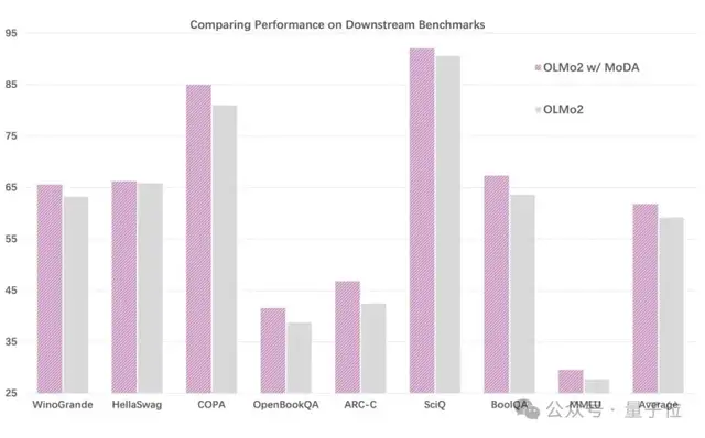 △引入混合深度注意力后,在主流的开源基线(OLMo2)上全面提升了模型能力。
