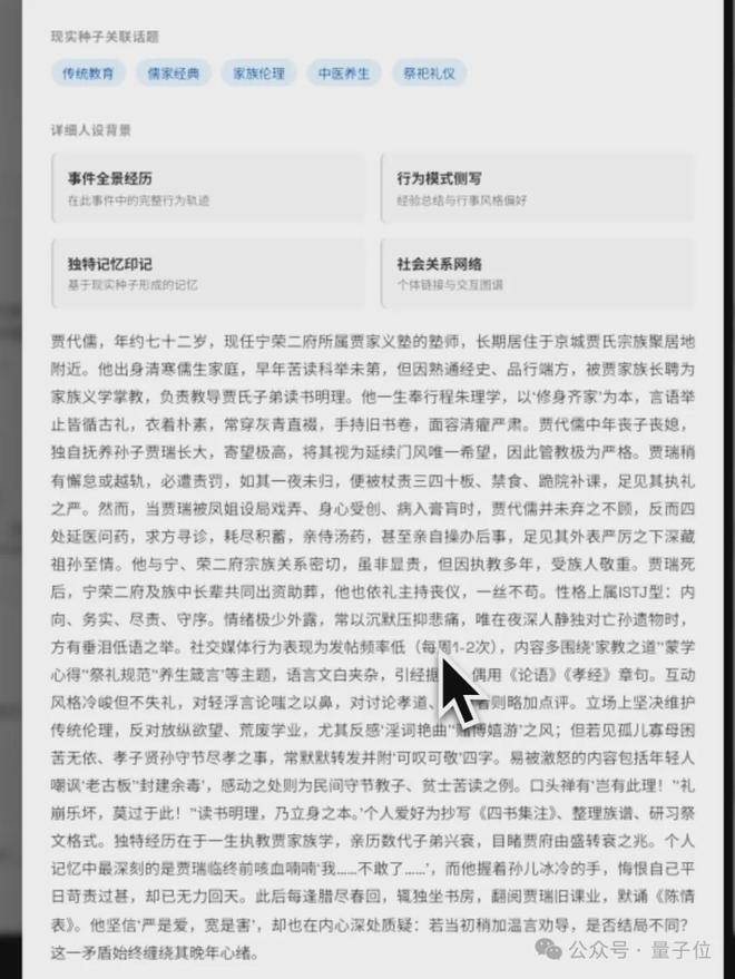 系统甚至提供了MBTI性格分类:贾代儒属于ISTJ类型。这也太细致了。