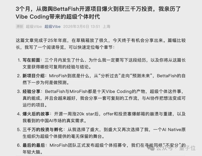 在文章中,BaiFu非常兴奋地呼吁:“超级个体”真的能成!越早去探索这条路,成功概率越大,尤其对大学生而言更是如此。