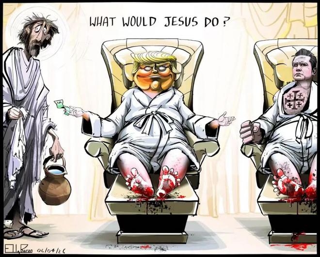 特朗普脚染鲜血 漫画图