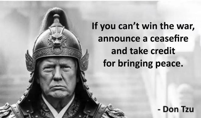 网络 " 唐子热梗 " 有一条就这样说嘛:如果你赢不了战争,就宣布停火,然后将和平的功劳归于自己。