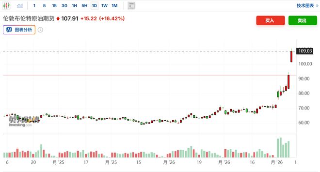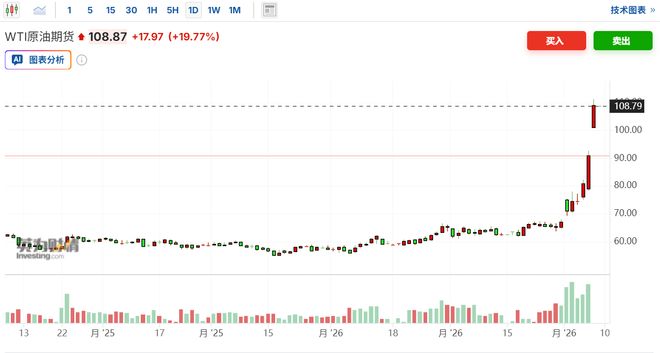 美国西德克萨斯轻质原油期货升至110美元一桶的水平,并在最新交易中报收于111.0美元/桶,日内涨幅达到了22.11%。与此同时,布伦特原油期货同样触及了110美元/桶的高位,最后报价为110.263美元/桶,当日涨幅达18.96%。值得一提的是,油价上次突破这一关键价位是在去年乌克兰危机爆发之后。
