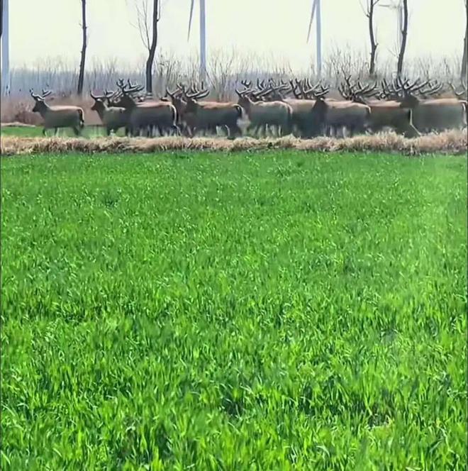大丰区自然资源和规划局的工作人员表示,附近保护区有成群活动的野生麋鹿,数量不断增加,目前已达8000多头。麋鹿啃食庄稼的情况确实存在,目前小麦刚出苗,麋鹿喜欢吃,已经有一些农户受到了损失。