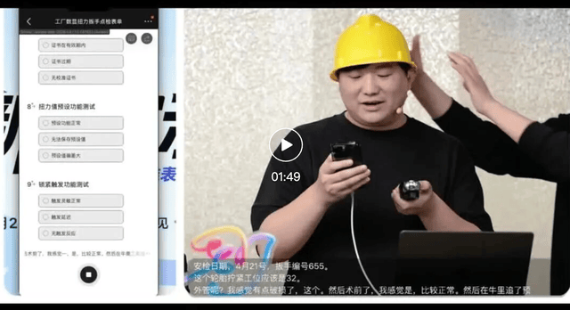 然后往这个扳手上贴上一张飞书生成的二维码,再用手机上的飞书去扫它,就能实现在点巡检现场直接上传数据:
