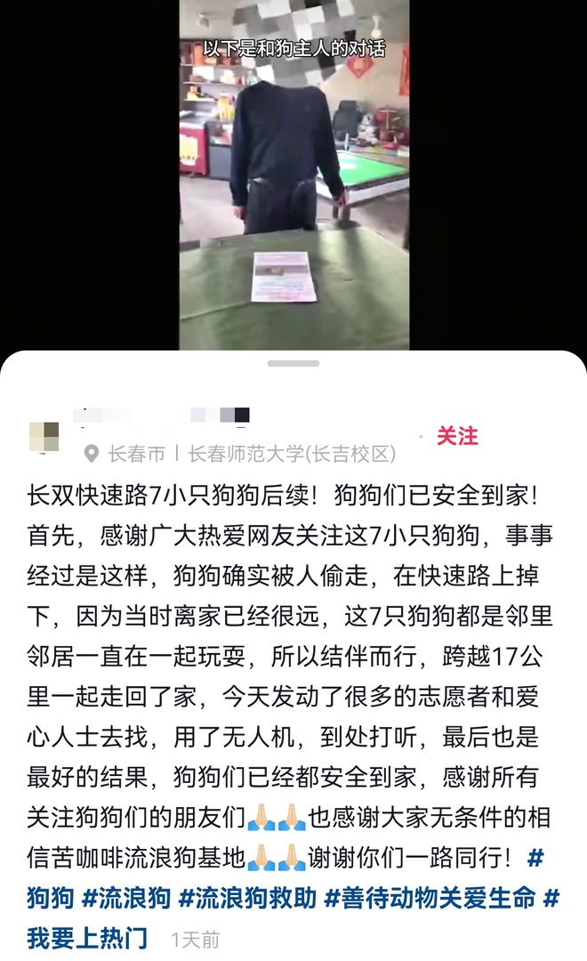 3月18日,经过热心人士的不懈努力,终于传来了好消息,这七只狗狗已经全部安全回到了家。