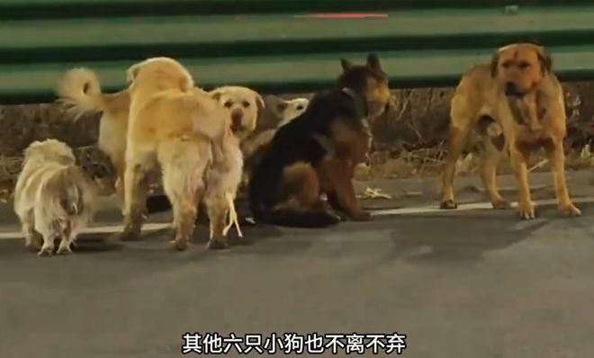 一家流浪狗救助基地的账号发布了一段视频,透露这七只狗狗在长双快速路上被偷后,经过17公里的跋涉,最终结伴回家。