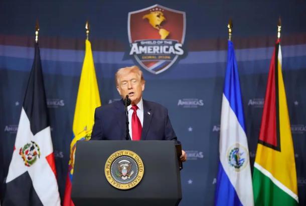 ▲特朗普在“美洲之盾”峰会上发表讲话