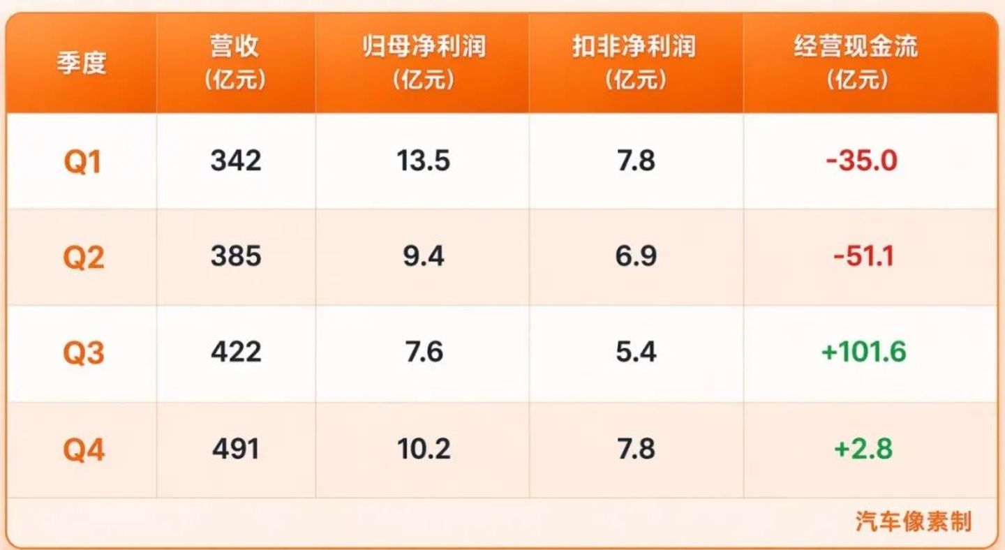 深蓝在2025年的收入达到502亿元人民币,亏损有所收窄至9亿元。虽然销售额增加且亏损减少,但经营活动产生的现金流量却进一步恶化,从2024年的正向转变为负值,这表明公司在增长过程中可能增加了库存或延长了账期。