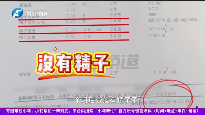 随后他前往医院进行检查,结果显示精子量恢复正常。