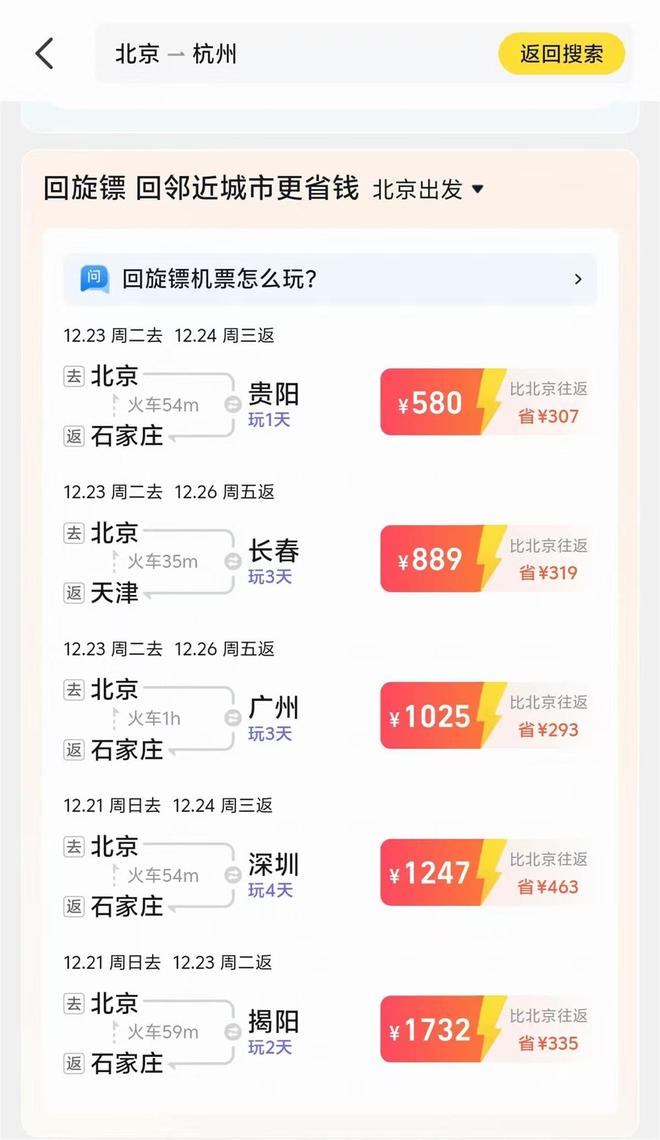 “回旋镖”机票比正常往返便宜近一半