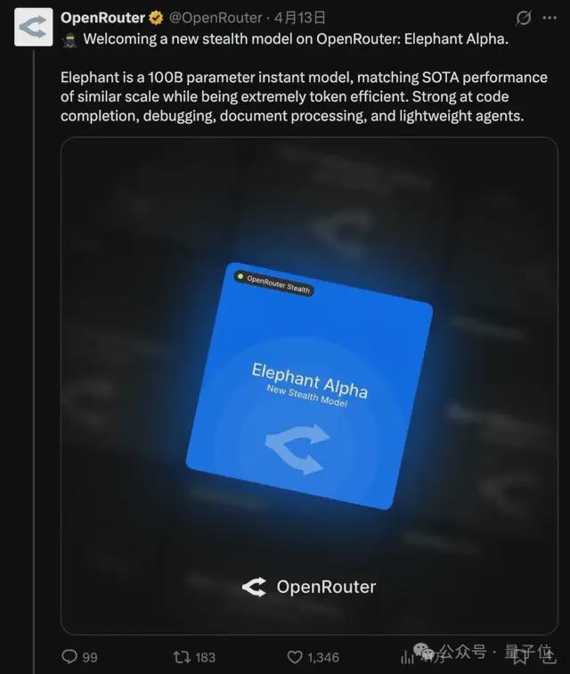 不久前,OpenRouters在其官方平台上提及了一个尚未公开的模型——Elephant Alpha,并对其作出了如下评价: