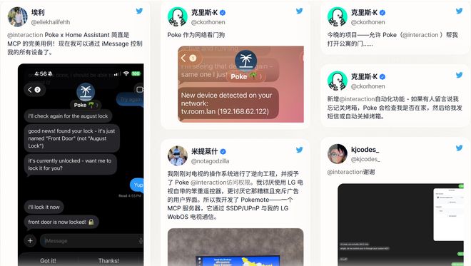 更有用户让Poke代为开门禁,或是充当“网络守卫”,实时监控家庭环境。