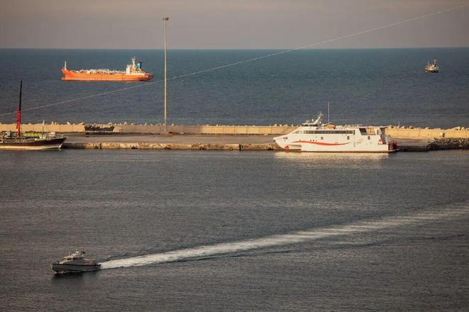 今年3月30日,在霍尔木兹海峡附近的马斯喀特锚地停泊的油轮和高速艇 / 图片来源:视觉中国