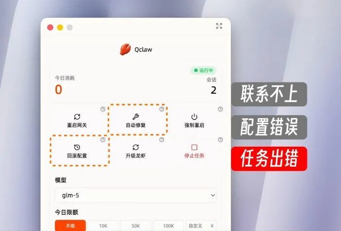 如果发现OpenClaw出现问题,只需点击几下就可以重启网关或回滚到之前的配置;如果任务出现偏差,则可以直接暂停以节省计算资源。