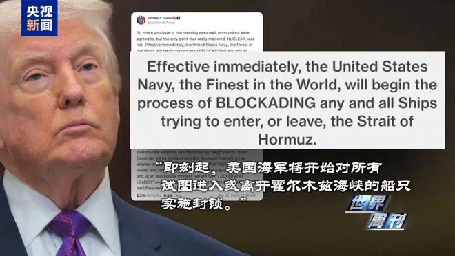 4月12日,在美伊首轮伊斯兰堡会谈破裂后,美国总统特朗普宣布美国海军将对霍尔木兹海峡实施封锁。