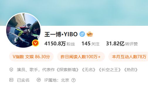 在王一博的个人微博主页上,可以发现他已经更新了他的昵称,去掉了之前组合UNIQ的前缀,并且删除了认证信息中关于“UNIQ组合成员”的内容,同时增加了其代表作《探索新境》的信息。