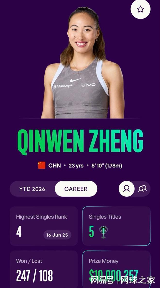 中国选手郑钦文确认将参加该赛事,此外,WTA官方网站的最新数据显示,郑钦文的职业生涯总奖金已超过1000万美元,成为继李娜和张帅之后第三位达到此成就的中国大陆球员。祝贺她!