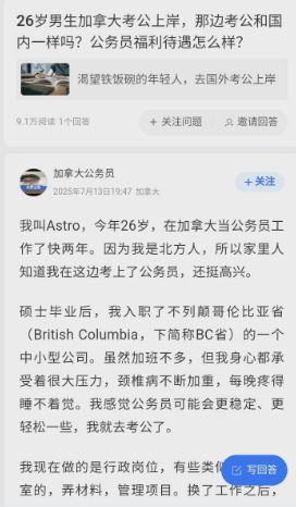 Astro于2025年7月接受了潇湘晨报的采访,讲述了自己在加拿大考取公务员的过程。