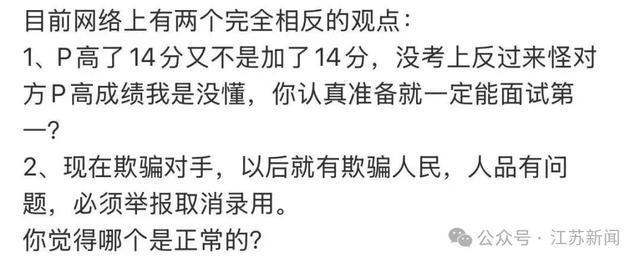 他们指出,如果该考生通过伪造成绩“吓退”竞争对手,其行为已经干扰了招录工作,破坏了公平秩序。