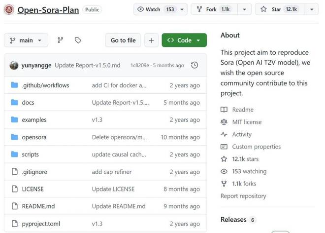 Open-Sora Plan 开源项目已在 GitHub 收获超 1.2 万 star