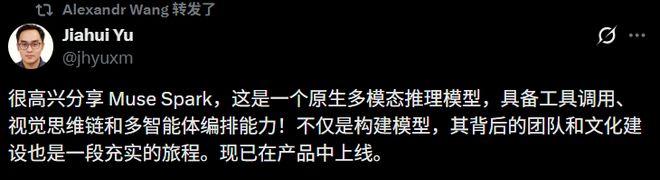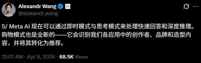 Meta首席AI官Alexandr Wang通过推文分享了他对新产品的兴奋之情。