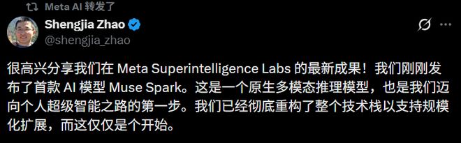 如今,Muse Spark的发布证明了一件事,Meta超级智能实验室九个月的重构是有产出的。
