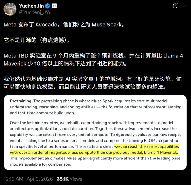 这条曲线说明了一件事,Meta不只是砸更多GPU,而是从底层提升了每一单位算力的产出。