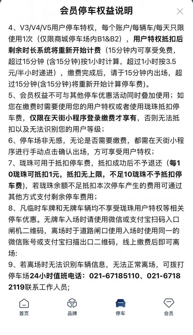 “会员停车权益说明”被指字体过小,停车规则难被看到且过于复杂