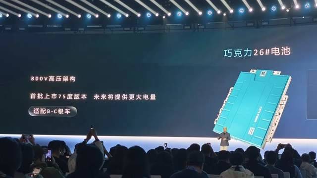 在产品方面,“巧克力26号电池”采用800伏高压架构,并首发75度电版本,后续还有更大容量的版本计划推出。