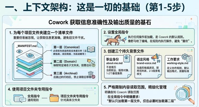 要想提高Cowork的工作效率,关键在于系统化的设置与架构,而不仅仅是提示词技巧。仔细研究这17个步骤可以发现,它们都强调了优化初始设定以减少后续操作复杂度的原则。