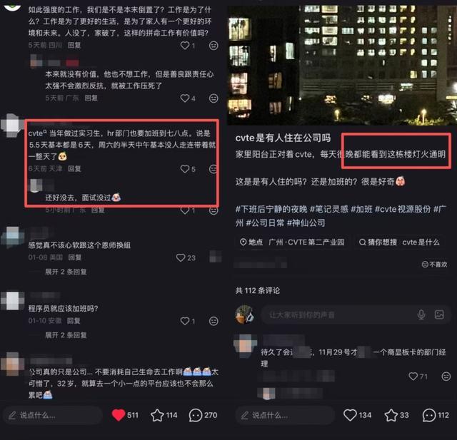 另在社交媒体上也可以看到,不少网民提到“公司加班是常态,大楼11点多仍然灯火通明”。