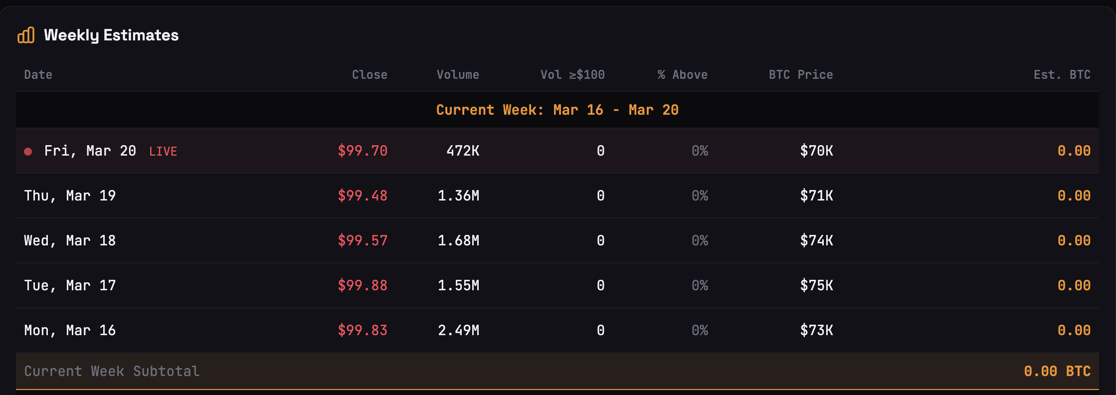 该机构本周暂停买入,此前分别于截至3月15日一周及更早一周大量购入22337枚及17994枚比特币。