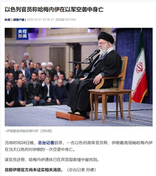 早些时候,伊朗外交部发言人已否认了关于哈梅内伊去世的消息,并确认最高领袖本人及总统佩泽希齐扬都安然无恙。