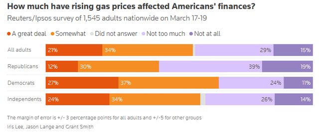 民调显示,55%的受访者表示油价上涨已经影响其家庭财务