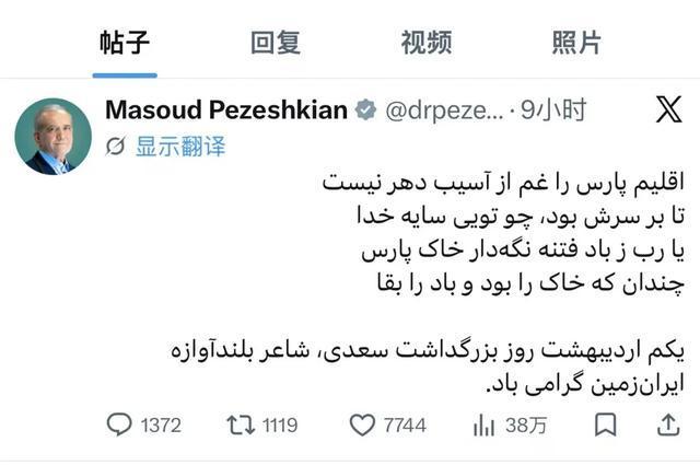 近日,在美伊停战期限即将到期之际,伊朗总统哈桑·鲁哈尼引用了古波斯诗人萨迪的一首诗表达了他的立场和态度。