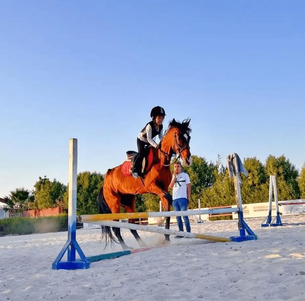 经过女儿浪浪的据理力争,工作人员最终同意更换了更安全的马匹。
