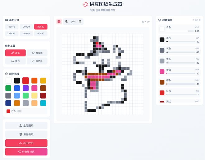 同时,智东西还尝试了利用“妙悟”生成拼豆图纸的功能,只需上传图片即可得到完整的拼图页面设计。