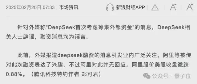 据了解,关于DeepSeek融资的传言并非首次出现,最早的记录可追溯至2025年2月。那时曾有消息指出“阿里巴巴等科技巨头有意投资”,但DeepSeek明确回应称有关融资的信息均为谣言。