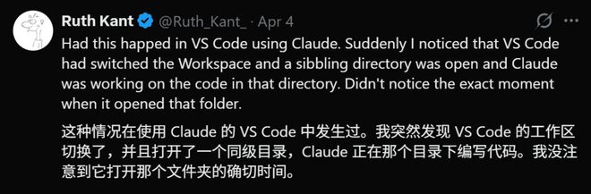 更离谱的是有人观察到VS Code的工作区被切换到了一个不该触碰的目录中,并在那里生成了大量文件。