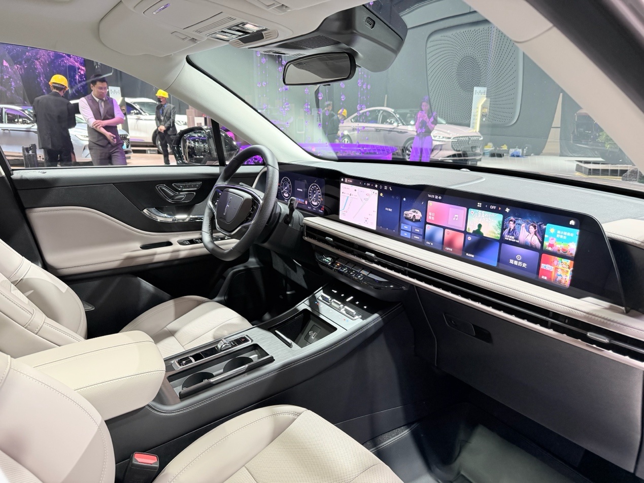 当进入车内时,可以发现这次更新的重点在于提升了智能化体验。新车配备有SYNC Max林肯星幕智行互联系统,并引入了AI大语言模型技术,使得语音交互的速度和理解能力都有显著提升,不再仅限于执行命令层面,而是达到了接近“对话”的程度。对日常驾驶而言,这种改进对于用户体验的改善至关重要——从工具型向陪伴式体验转变。
