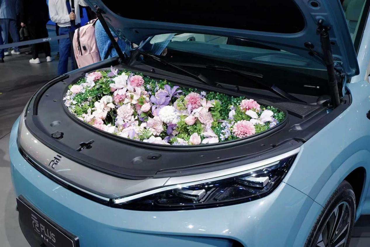 大唐与元PLUS的前备箱分别被改造成运动装备收纳空间和花房,让车主在下班后可以轻松切换不同场景下的使用模式,享受自由自在的生活方式。