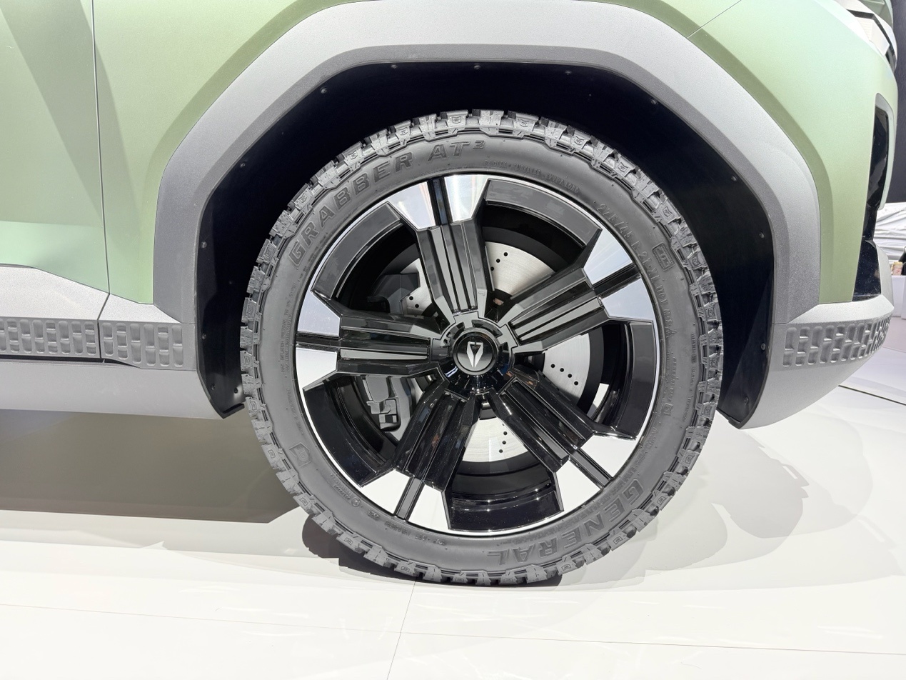 车身侧面突出了力量与体量感。通过宽大的轮拱和深色轮圈增强了视觉冲击力,悬浮式车顶和半隐藏式的门把手等现代设计元素均得以体现,既保持了前沿性,也为后续量产版的设计奠定了基础。
